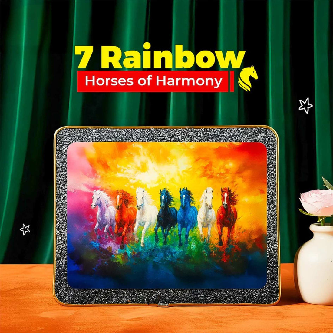 7 Running Horses Vastu Painting with Gold Frame (Pyrite Energy)